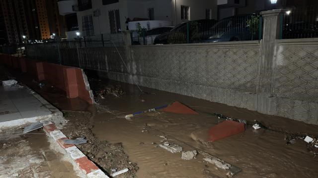 Adana'nın merkez Sarıçam ilçesinde kuvvetli sağanak nedeniyle bir siteyi su bastı, istinat duvarı çöktü.