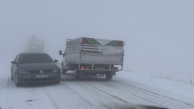 Kars-Göle kara yolunda etkili olan kar ve sis nedeniyle ulaşım güçlükle sağlanıyor.